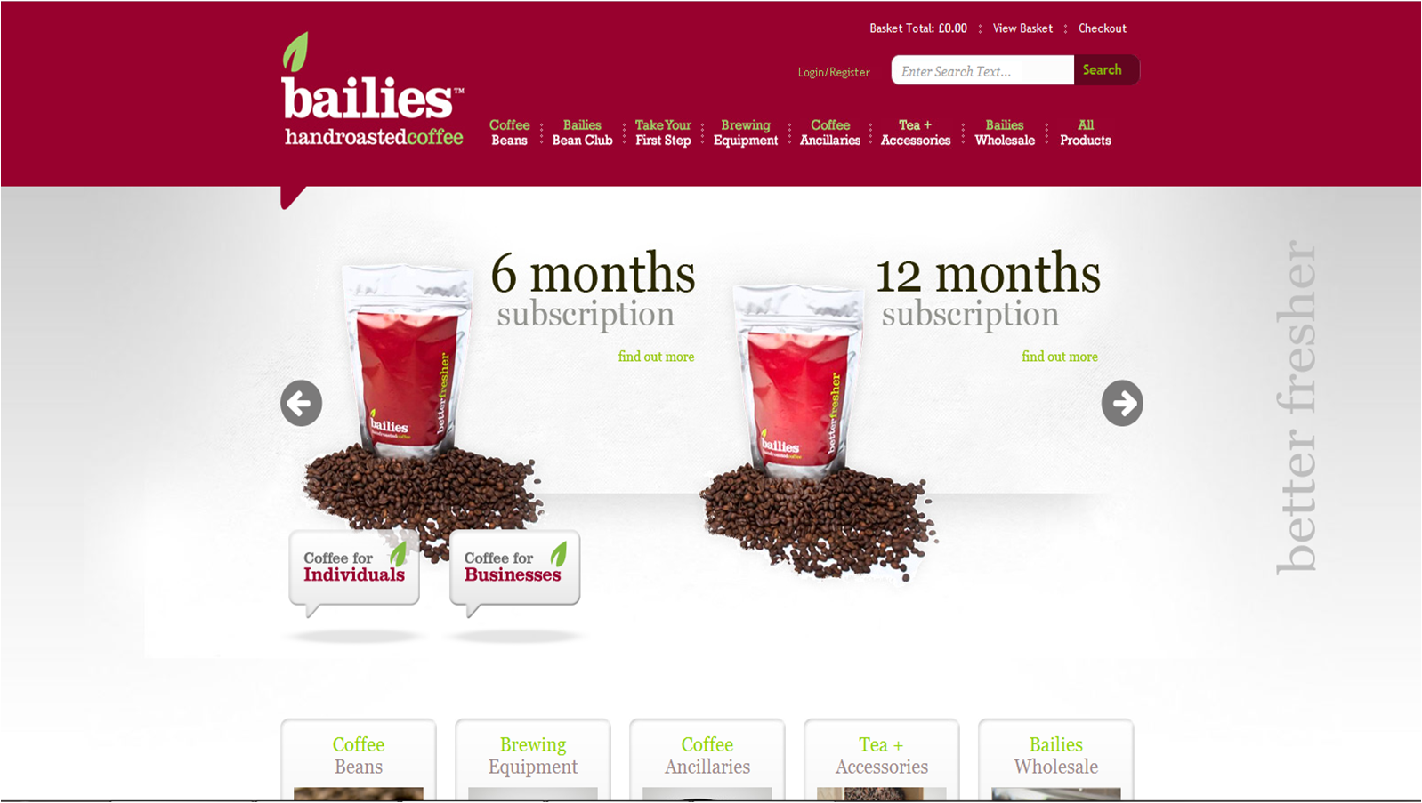 Bailies Coffee Company was founded in 1993 by Russell Bailie, who recognised the growing demand for quality freshly roasted and traceable coffee amongst an increasingly knowledgeable consumer base in the UK and Ireland. Bailies supply to both trade and individual customers. Not only do they produce and sell Award Winning Coffee, but they also offer barista training and a full range of coffee supplies such as coffee machines, coffee ancillaries, coffee starter packs and even tea! Check out their Stump Teapots – great for individual cups of tea. Let’s just say that if you’re looking for great quality, award winning coffee and all you’ll need to make and serve it, BailiesCoffee.com is the place to go.